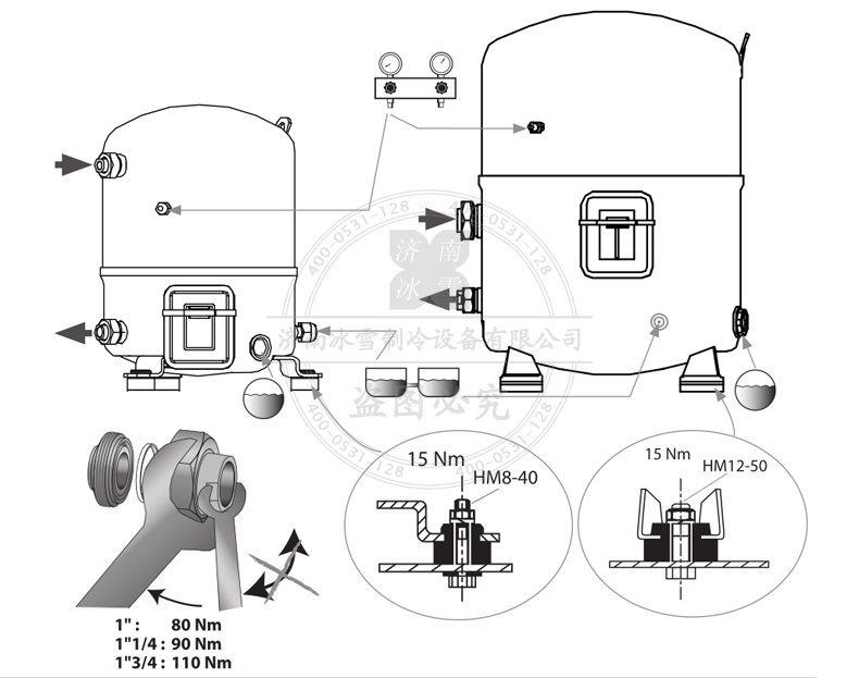 在貯存和運輸過程中請保持壓縮機豎直狀態(tài)。