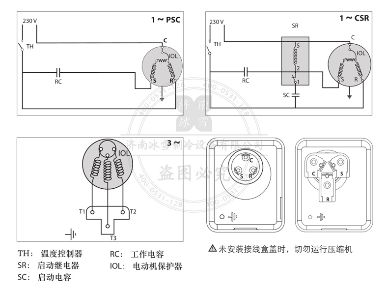 給壓縮機通電。它應(yīng)會立即啟動。如若不然,請立即將其關(guān)閉。如果單相接線錯誤,則會在數(shù)秒內(nèi)將其燒毀。